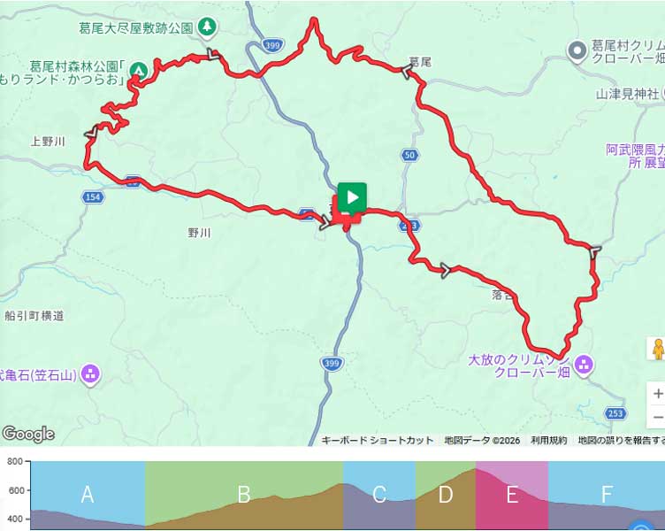 | 区間A … パレード | 5.2km | -105m | -2.0% |